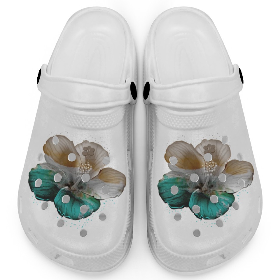 You are shopping for a stunning and trendy product Hibiscus Flower Cool Garden Nature Lover Humor Clogs For Kids WHITE belong theme Clogs at Printblur