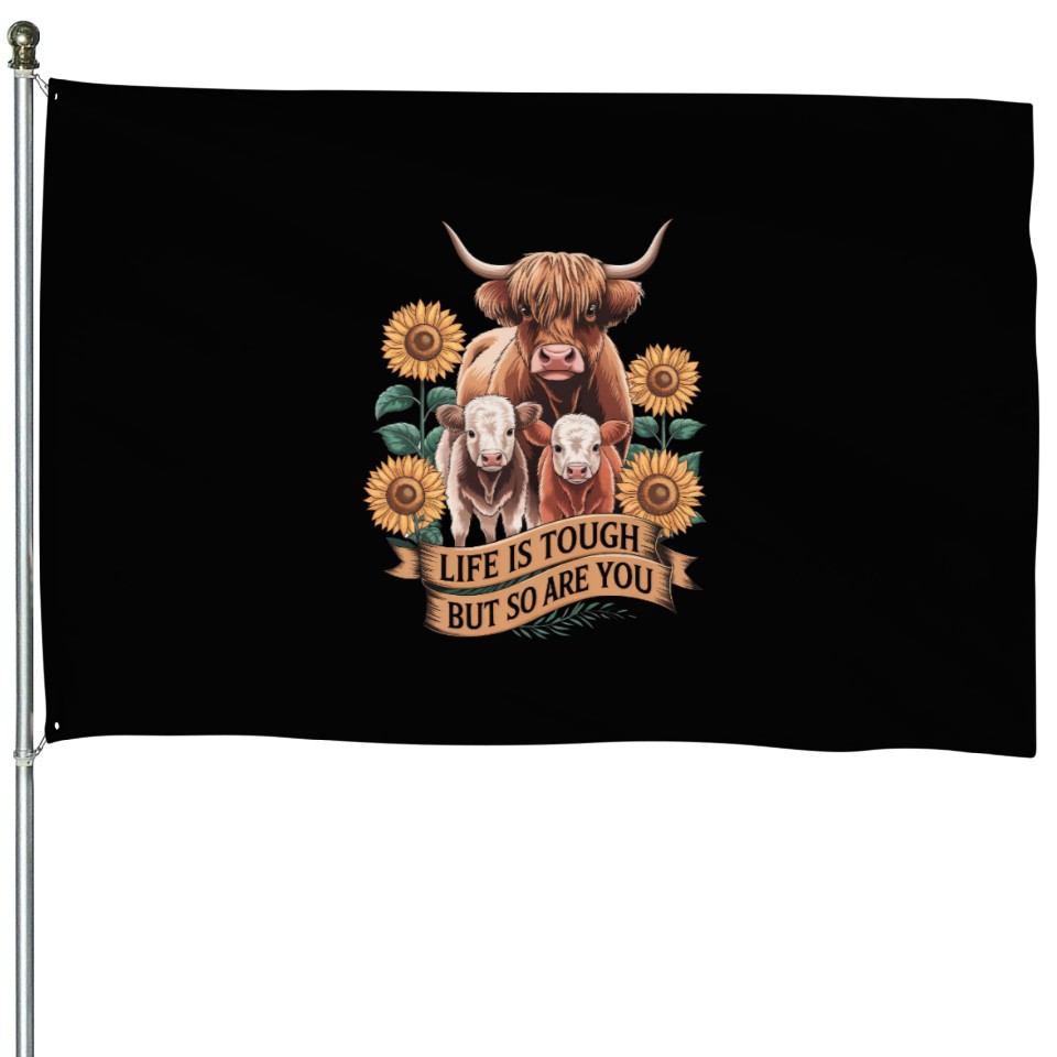 You are contemplating one of the best-selling products Highland Cow LIFE IS TOUGH House Flags For Black belong theme House Flags at Printblur