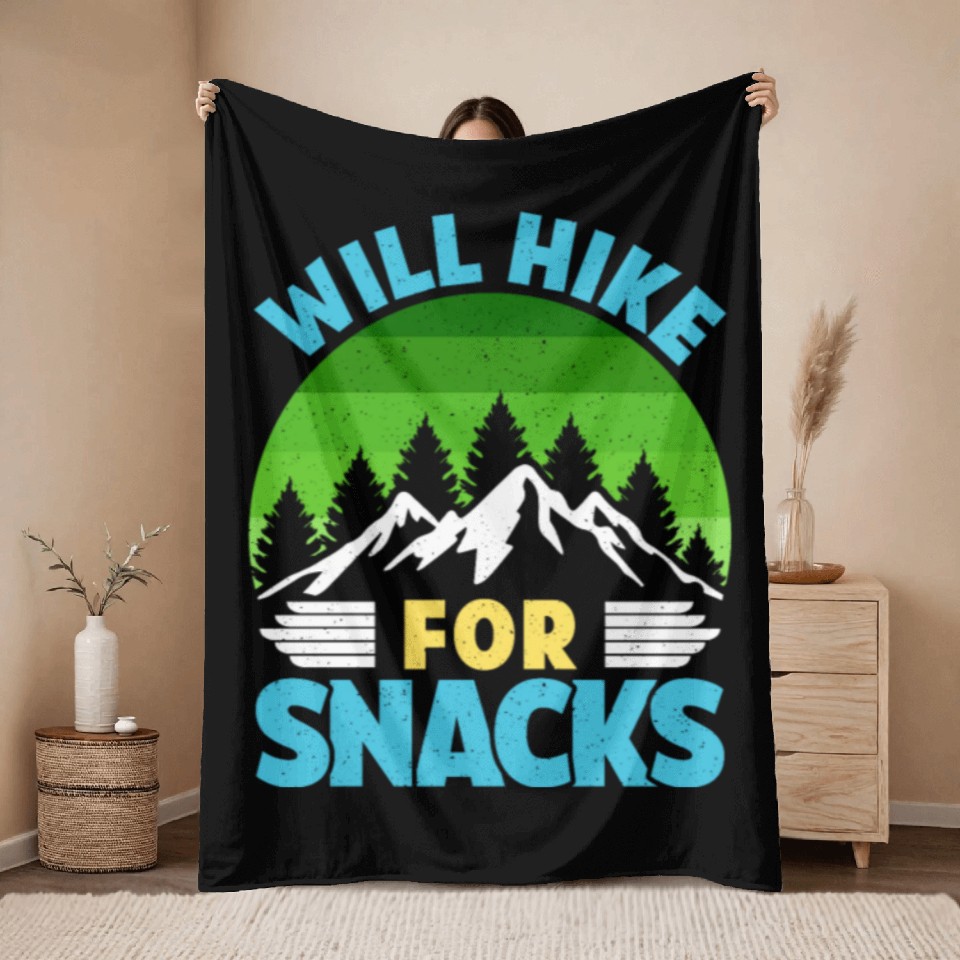 Shop for attractive Hiker funny Mountain fan will Hike for Snacks Throw Blankets or see more Throw Blankets products on https://printblur.com right now!