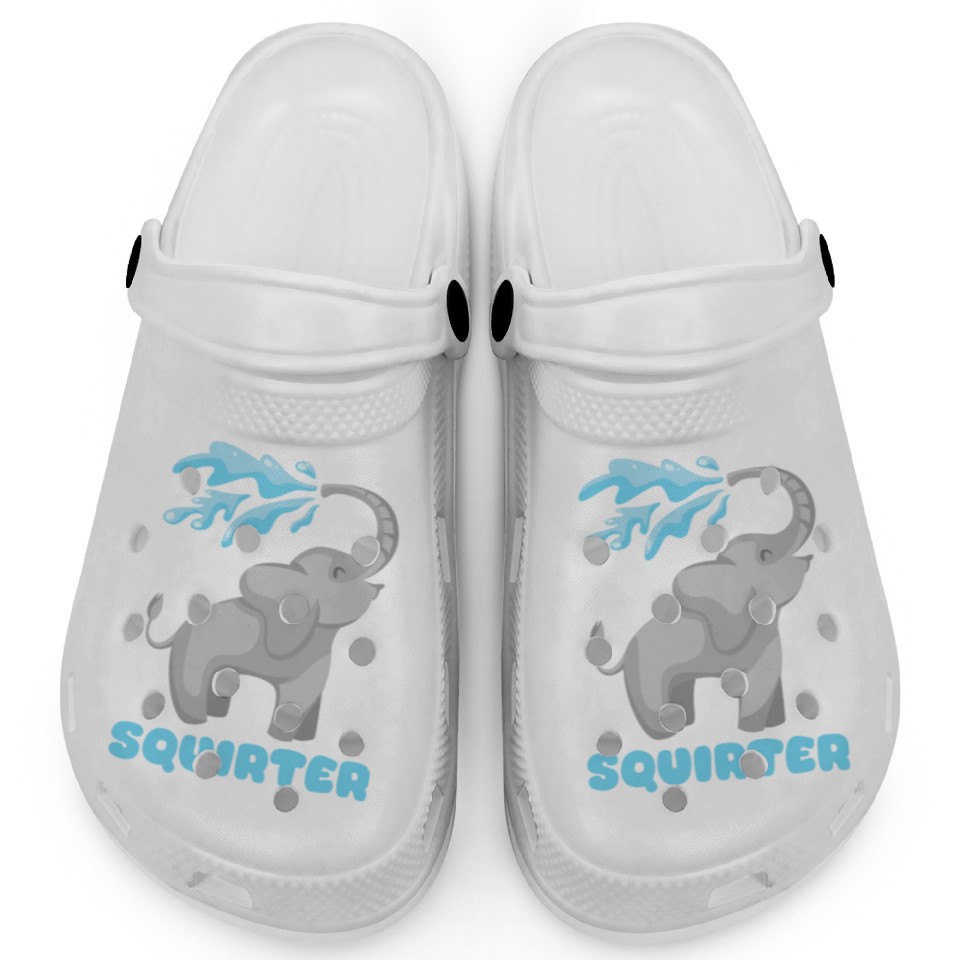 The item hot trend you're looking at is Hilarious Elephant and Inappropriat Gag Nerd, Geek Clogs For Kids WHITE belong theme Clogs at Printblur
