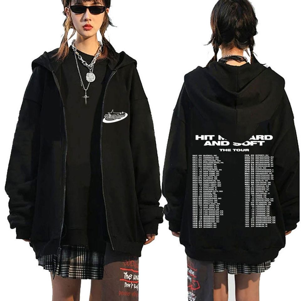 Own fascinating Hit Me Hard and Soft Tour 2024 Zipper Hoodie or see more Double Sided Zip Hoodies products now from Printblur shop to enjoy your shopping time!