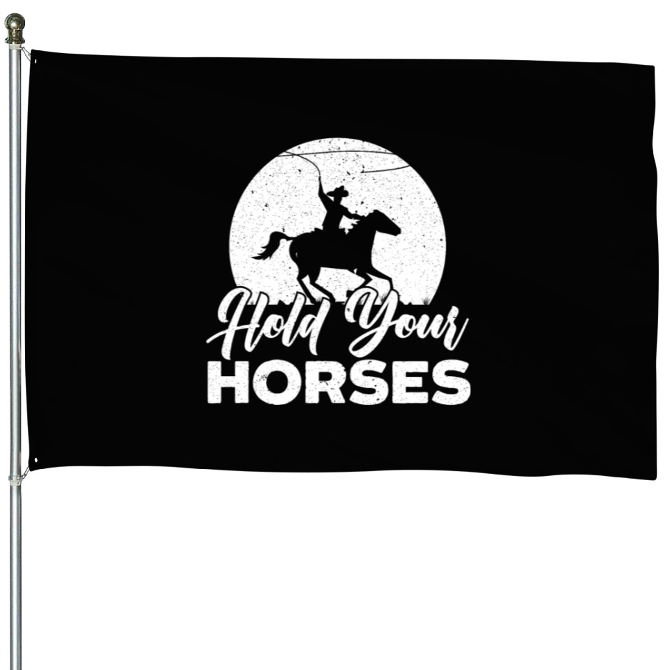 You are shopping for a stunning and trendy product Hold Your Horses Western Rodeo Riding Cowboy House Flags For Black belong theme House Flags at Printblur