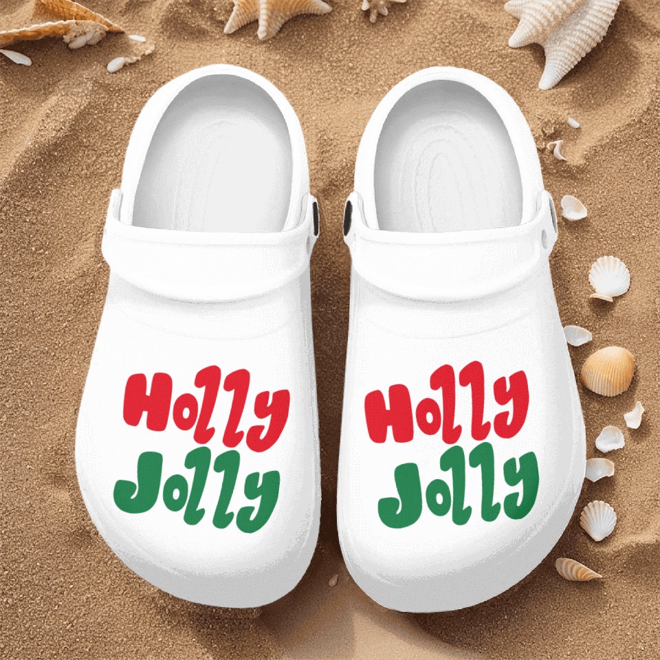 The product unique design you searched for is holly jolly Christmas Nurse Clogs For Men WHITE belong theme Nurse Clogs at Printblur