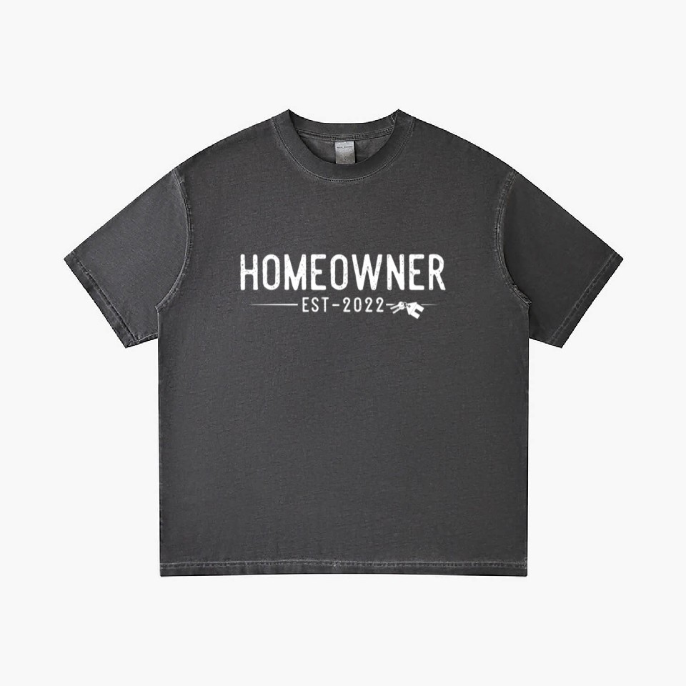 You're taking a peek at the product Homeowner 2022 First Time Home Owner Proud His Her Gradient T Shirts For Men Washed Black belong theme Gradient T-Shirts at Printblur