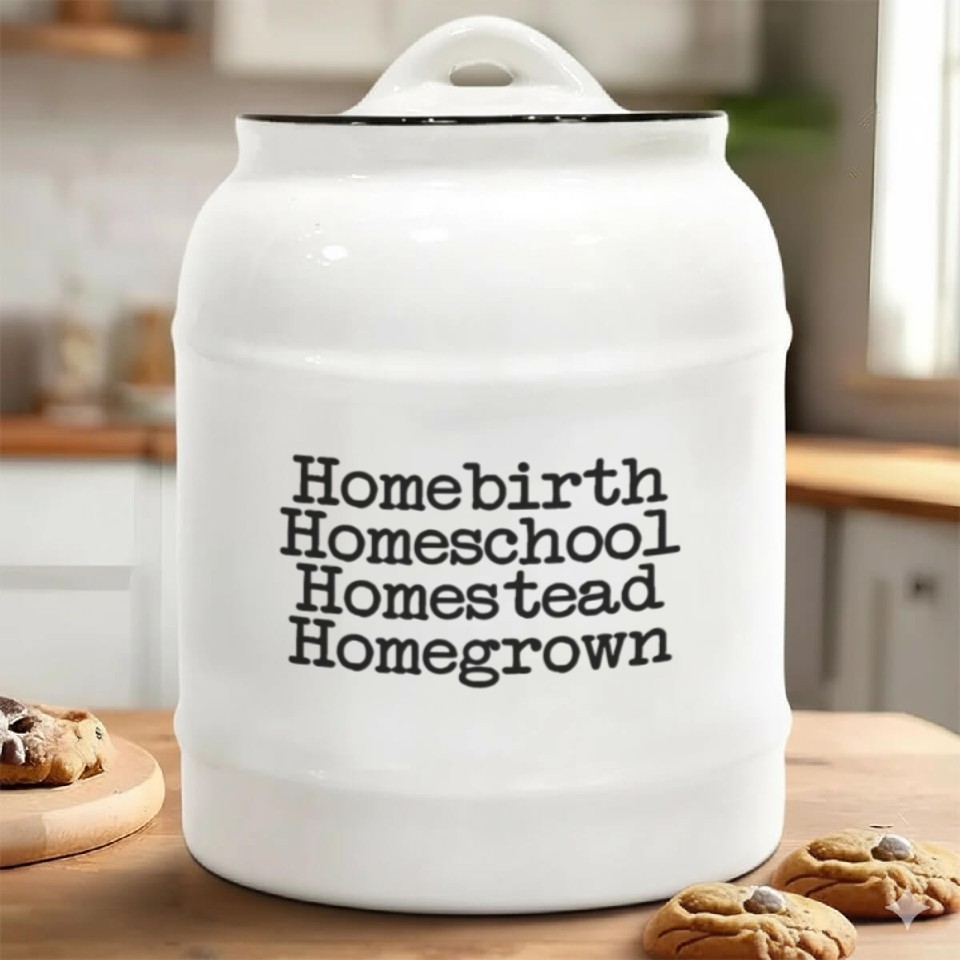 Homeschool Homebirth Homegrown Homestead Ceramic Cookie Jars