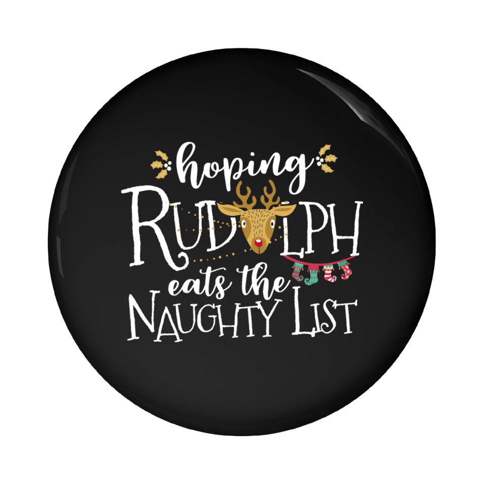 Hoping Rudolph Eats The Naughty List Funny Xmas Pin Buttons