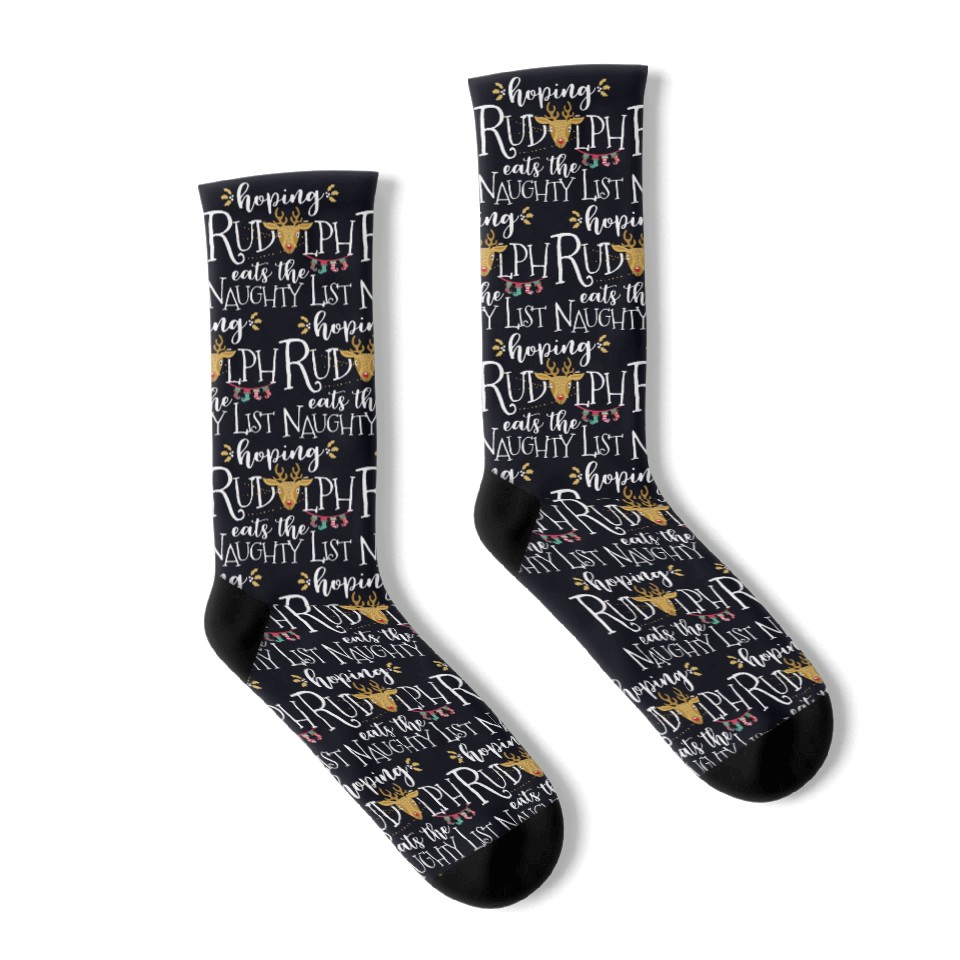 Shop for attractive Hoping Rudolph Eats The Naughty List Funny Xmas Socks or see more Socks products on https://printblur.com right now!