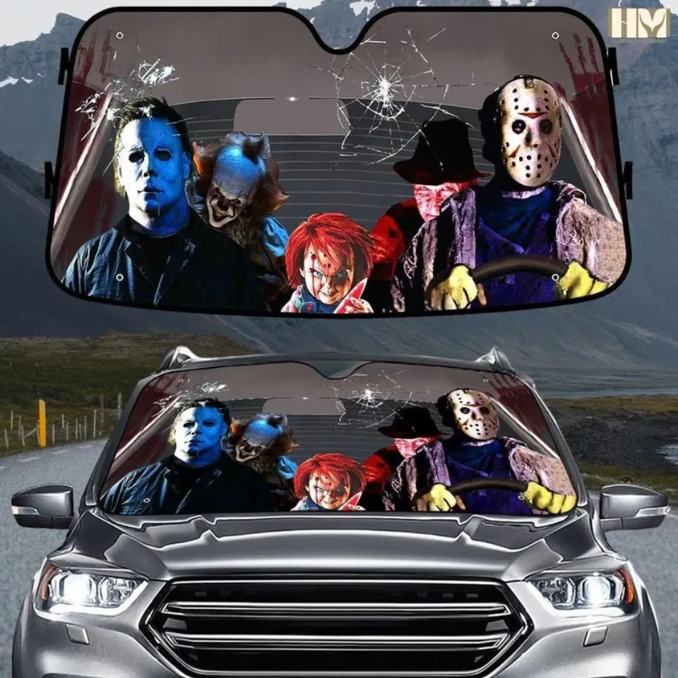 You're searching for a one-of-a-kind product Horror Character Car Sunshade, Halloween Slasher Car Decor For belong theme Car Sun Shades at Printblur