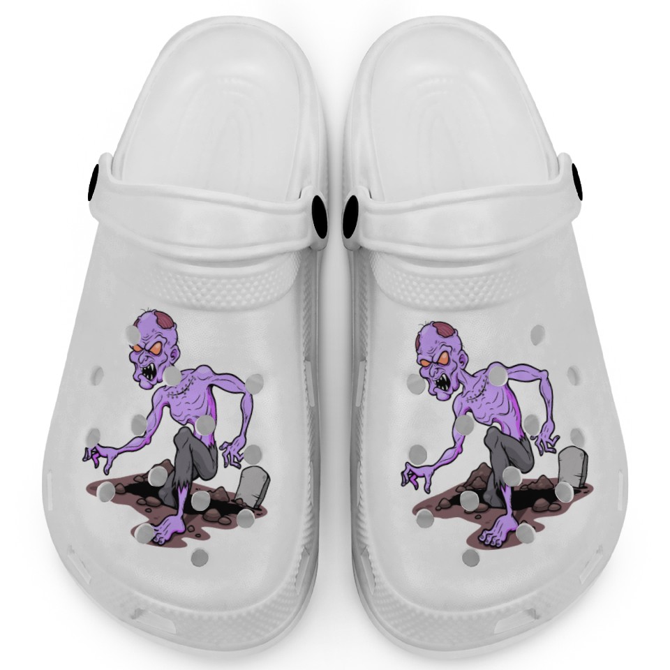 You are contemplating one of the best-selling products Horror Zombie Monster Illustration Clogs For Kids WHITE belong theme Clogs at Printblur