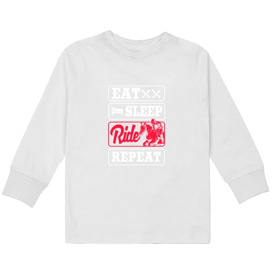 Own fascinating Horse Racing Jockey Eat Sleep Ride Horse Repeat Kids Long Sleeve T Shirts or see more Kids Long Sleeve T-Shirts products now from Printblur shop to enjoy your shopping time!