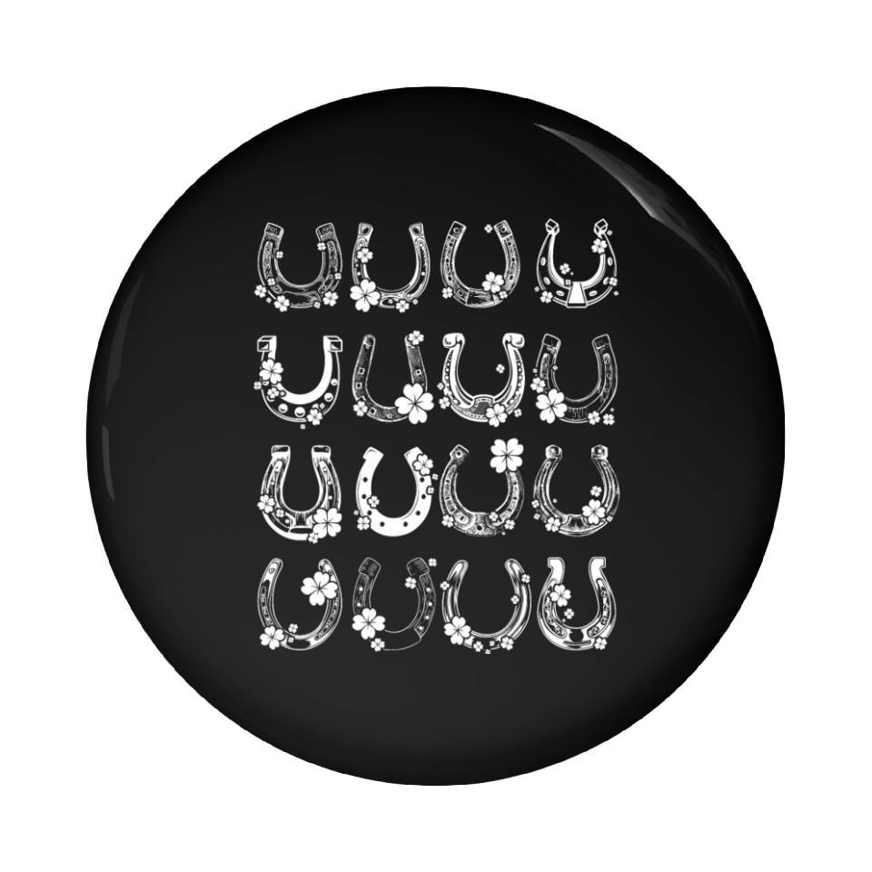 You're looking at the eye-catching product Horse Shamrock Horseshoe Patrick s Day Leaf Lucky Pin Buttons For Black belong theme Pin Buttons at Printblur