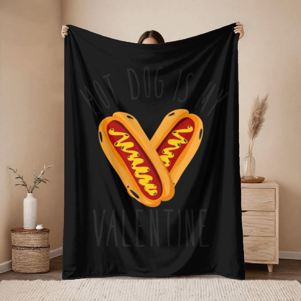 You are seeing a unique and impressive product Hot Dog Adult Heart Valentines Day Throw Blankets For Black belong theme Throw Blankets at Printblur