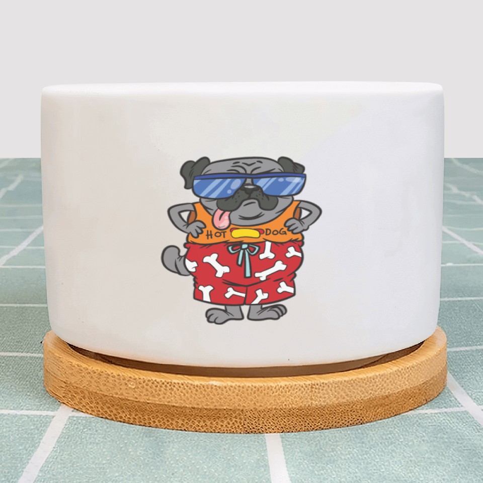 The item hot trend you're looking at is Hot Dog Pug Lover Summer Beach Plant Pots For WHITE belong theme Plant Pots at Printblur