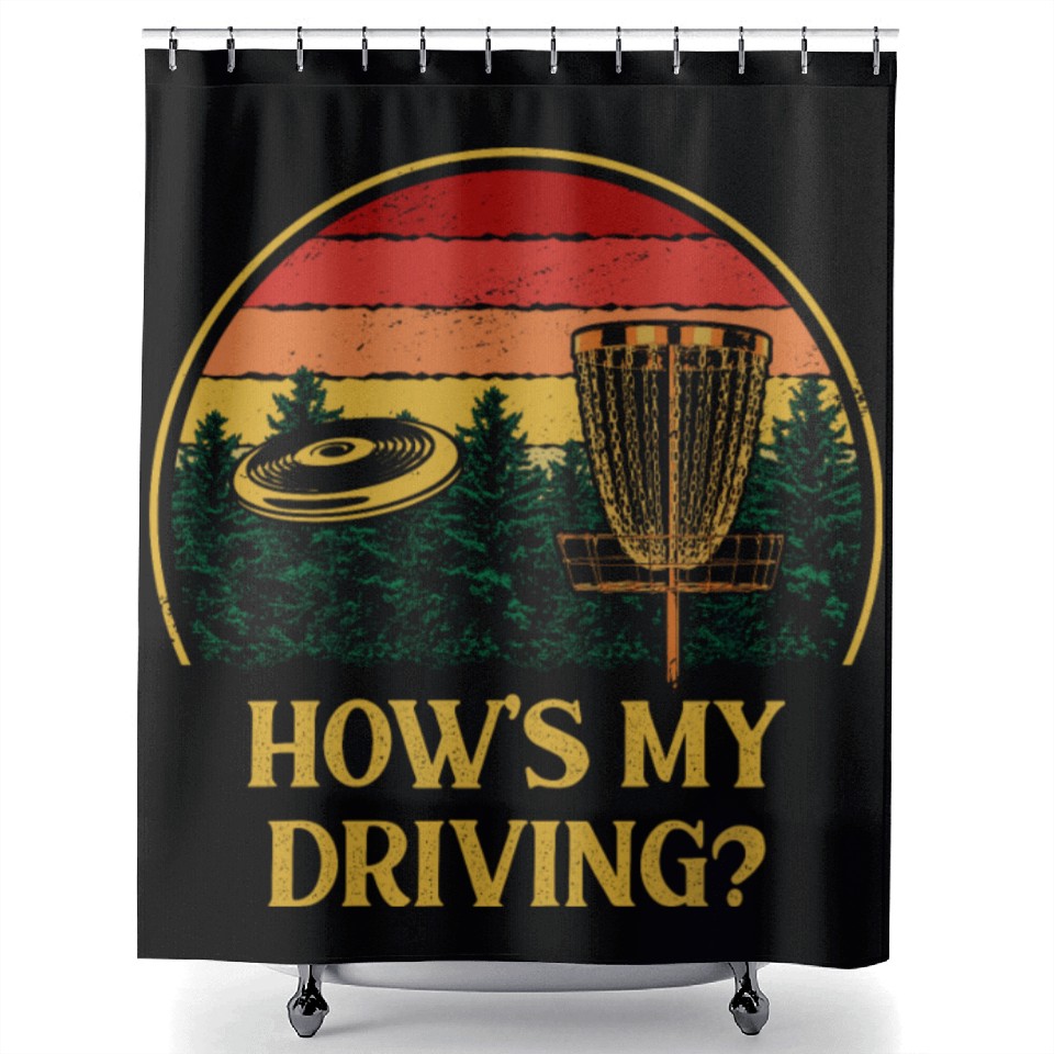 You are seeing a unique and impressive product Hows My Driving Disc Golf Pun Golfer Joke Funny Co Shower Curtains For Black belong theme Shower Curtains at Printblur