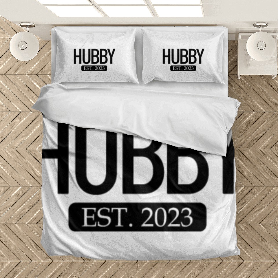 Shop for attractive Hubby Est. 2023 Matching Couple Newlywed Marriedma Bedding Sets or see more Bedding Sets products on https://printblur.com right now!