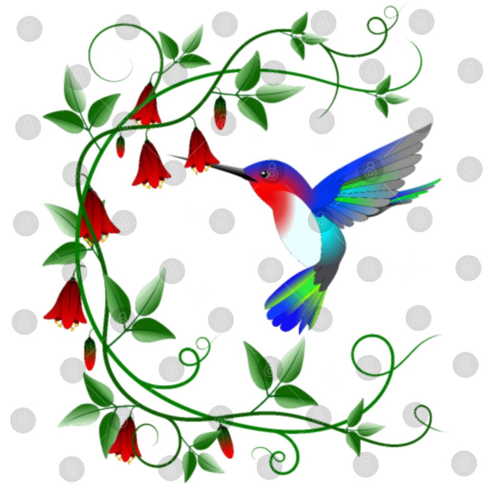 Hummingbird with red flowers Digital Files