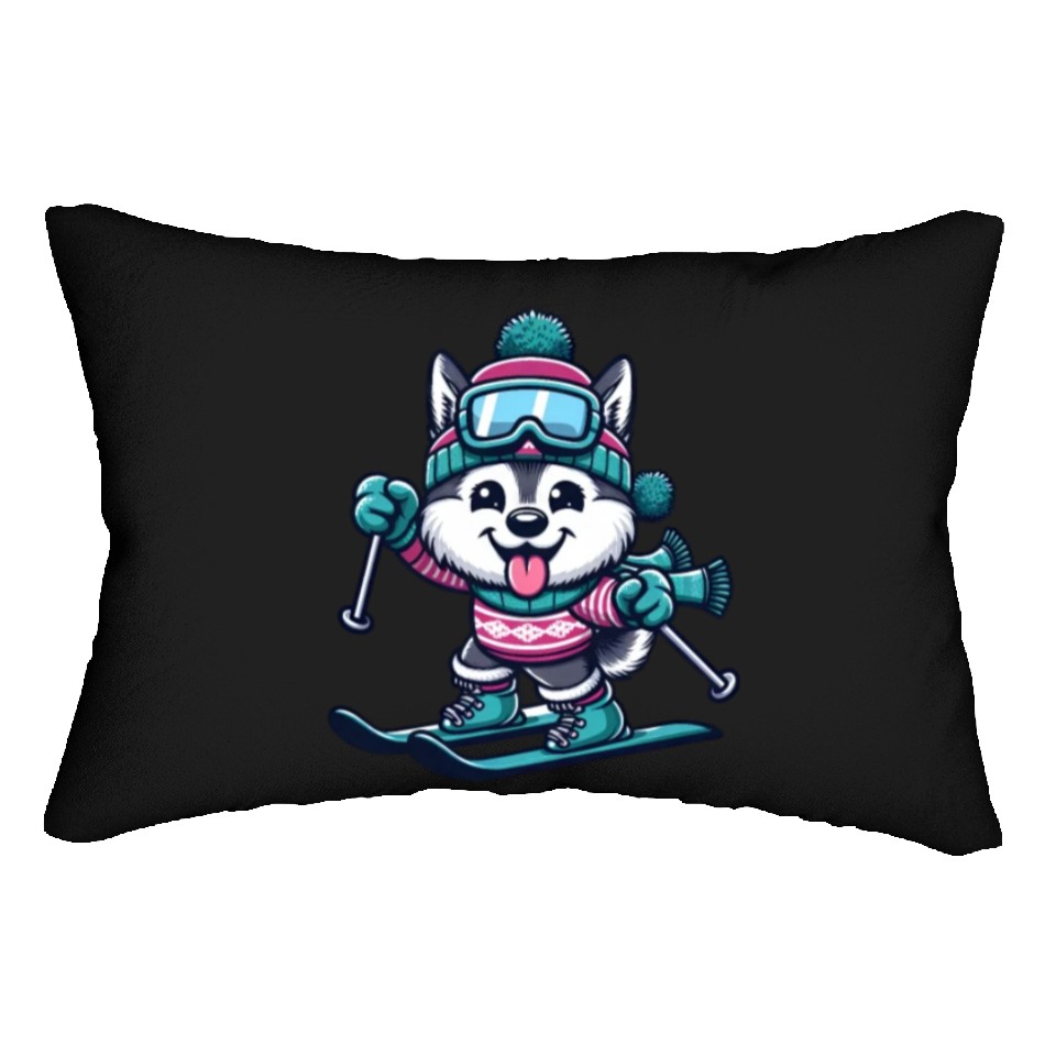 The product unique design you searched for is Husky on Skis - Funny Comic Winter Sports Lumbar Pillows For Black belong theme Lumbar Pillows at Printblur