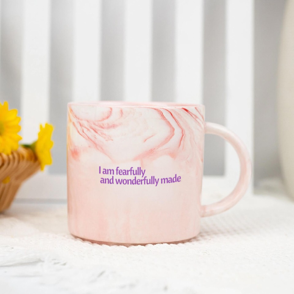 You are viewing one of the trendiest products I am fearfully and wonderfully made affirmation Marble Mugs For Pink belong theme Marble Mugs at Printblur