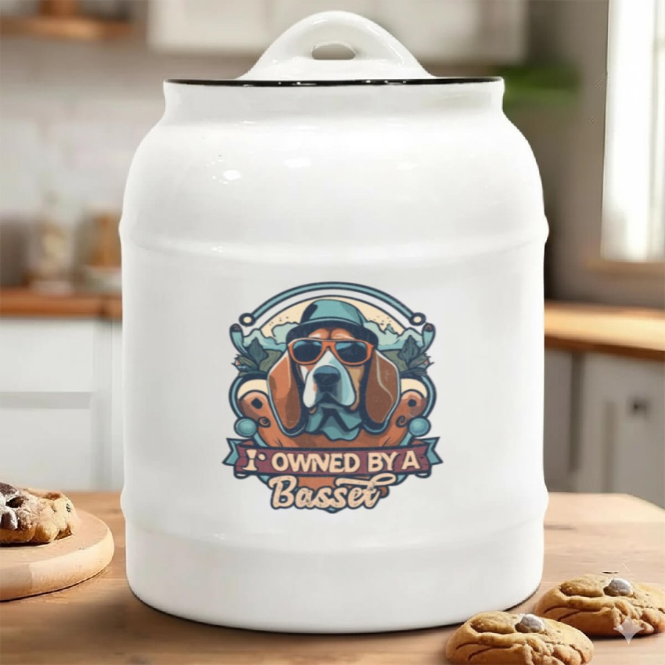 You are seeing a unique and impressive product I Am Owned By A Basset Hound Funny Cool Dog Lover Ceramic Cookie Jars For belong theme Ceramic Cookie Jars at Printblur