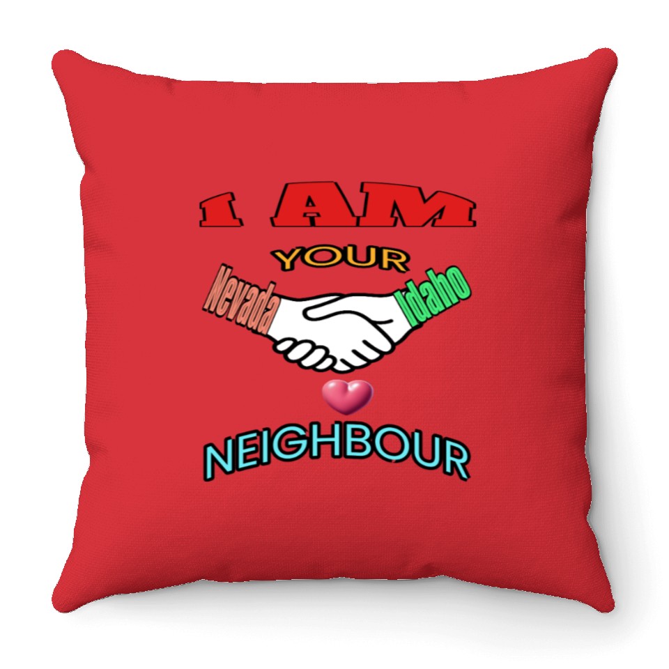 Shop for attractive I AM YOUR NEIGHOUR NEVADA AND IDAHO Throw Pillows or see more Throw Pillows products on https://printblur.com right now!