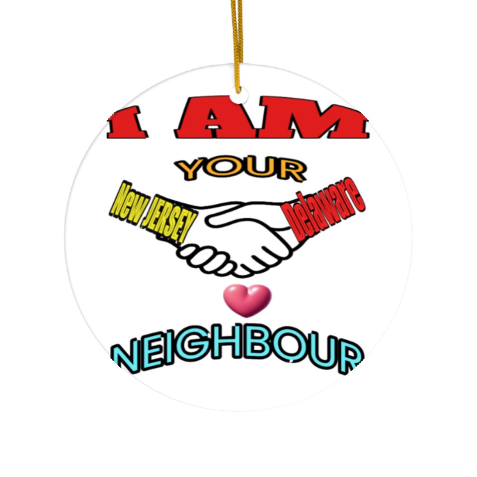 You are shopping for a stunning and trendy product I AM YOUR NEIGHOUR NEW JERSEY AND DELAWARE Ceramic Ornaments For WHITE belong theme Ceramic Ornaments at Printblur