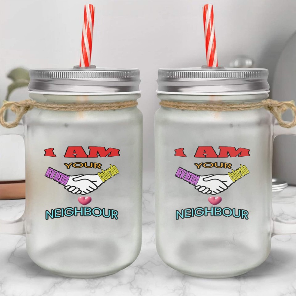Buy eye-catching I AM YOUR NEIGHOUR NEW MEXICO AND COLORADO Mason Jar Cups or see more Mason Jar Cups products at Printblur shop now to explore many surprises from our shop!