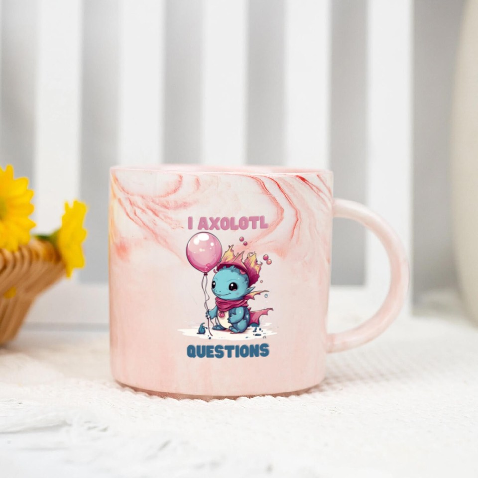 You're searching for a one-of-a-kind product I Axolotl Questions Cute Axolotl Kawaii Marble Mugs For Pink belong theme Marble Mugs at Printblur