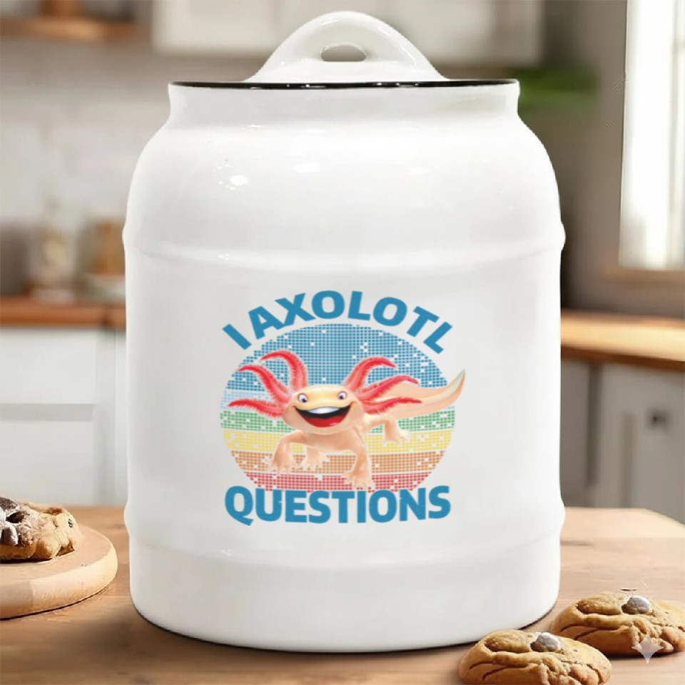 You're taking a peek at the product I Axolotl Questions Cute Retro Vintage Axolotl Ceramic Cookie Jars For belong theme Ceramic Cookie Jars at Printblur