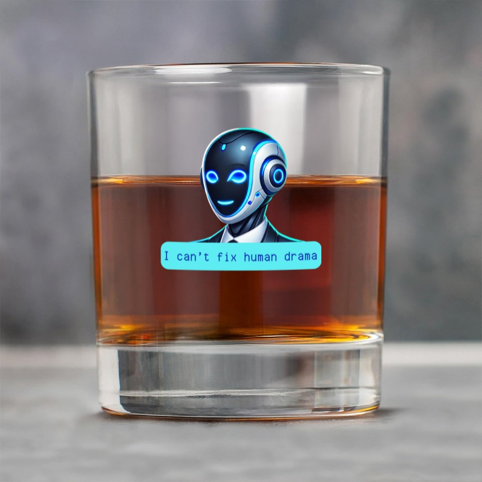 I Can't Fix Human Drama Funny AI Robot Design Rock Glasses