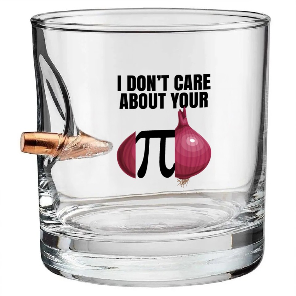 I Don't Care About Your Opinion Onion Pi Math Joke Bullet Whiskey Glasses