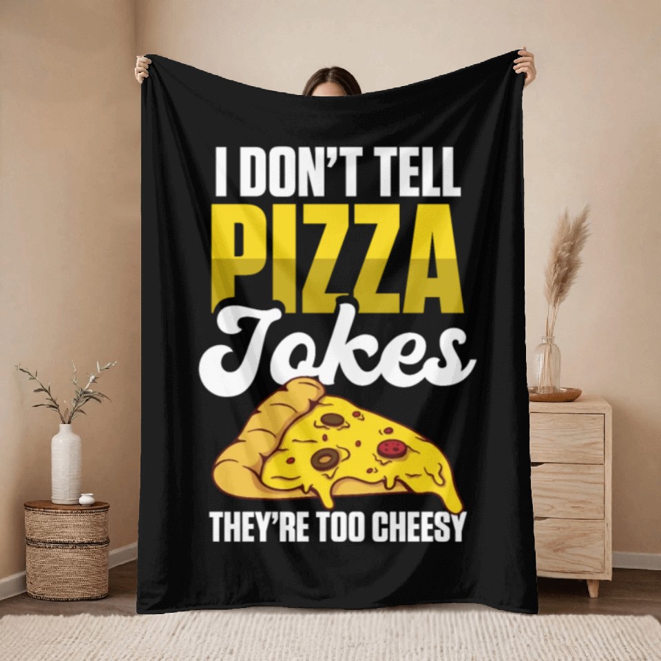 Shop for attractive I Don’t Tell Pizza Jokes They’re Too Cheesy Throw Blankets or see more Throw Blankets products on https://printblur.com right now!