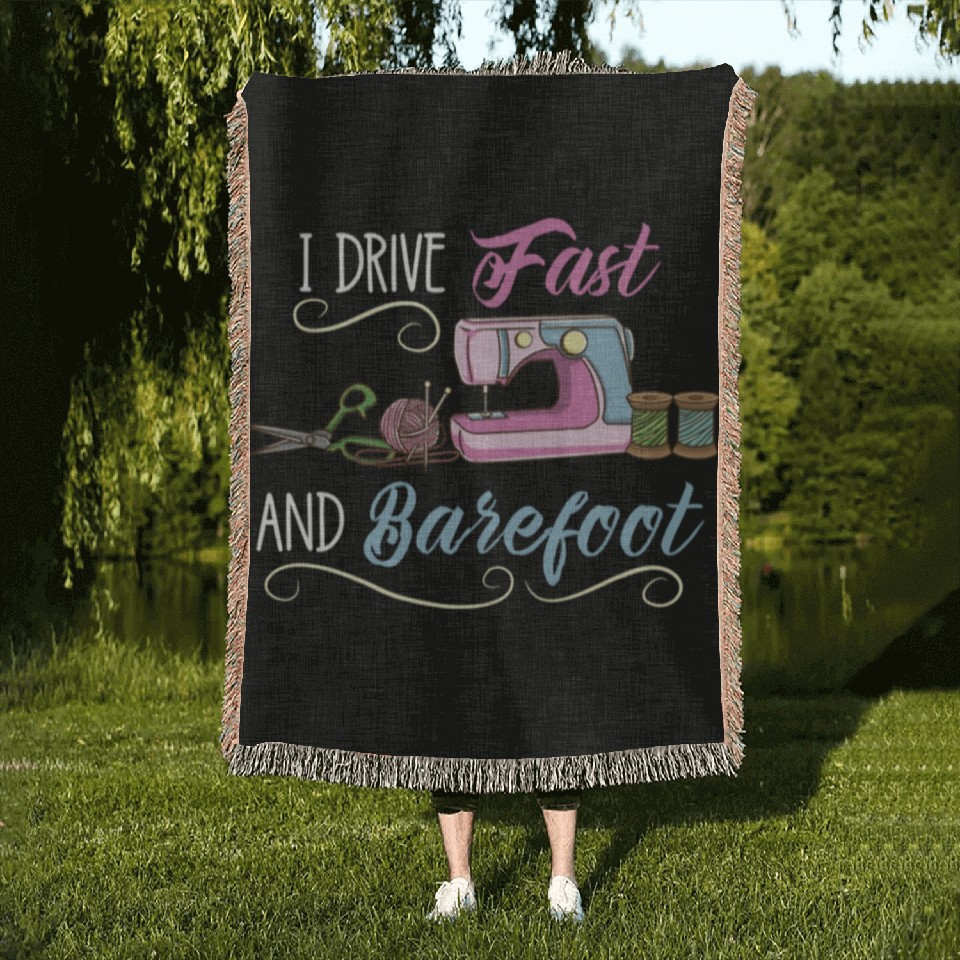 Buy eye-catching I Drive Fast And Barefoot For Sewing Lover Woven Blankets or see more Woven Blankets products at Printblur shop now to explore many surprises from our shop!