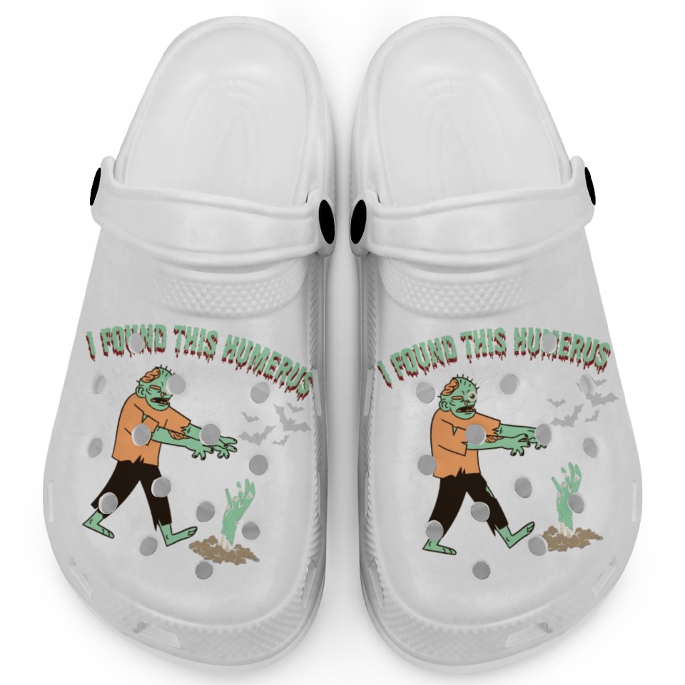 Own fascinating I Found Humerus - Funny halloween zombie Clogs or see more Clogs products now from Printblur shop to enjoy your shopping time!