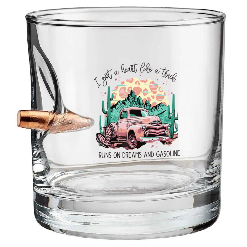 I Got A Heart Like a Truck Bullet Whiskey Glasses