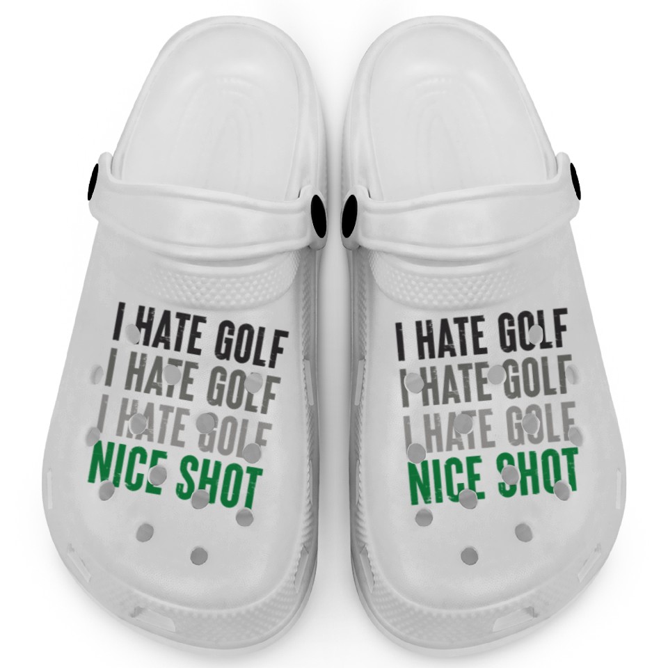 You're looking at the eye-catching product I Hate Golf Nice Shot I Love Golf Golf Player Golf Clogs For Kids WHITE belong theme Clogs at Printblur