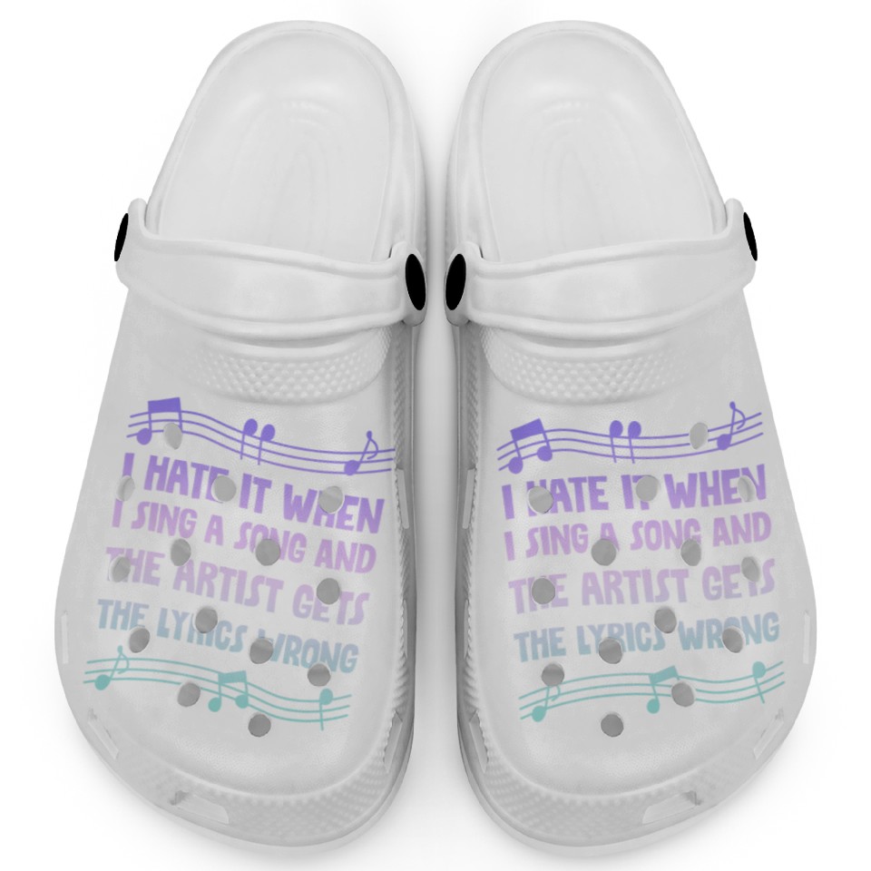The product unique design you searched for is I Hate It When I Sing A Song And The Artist 4 Clogs For Kids WHITE belong theme Clogs at Printblur