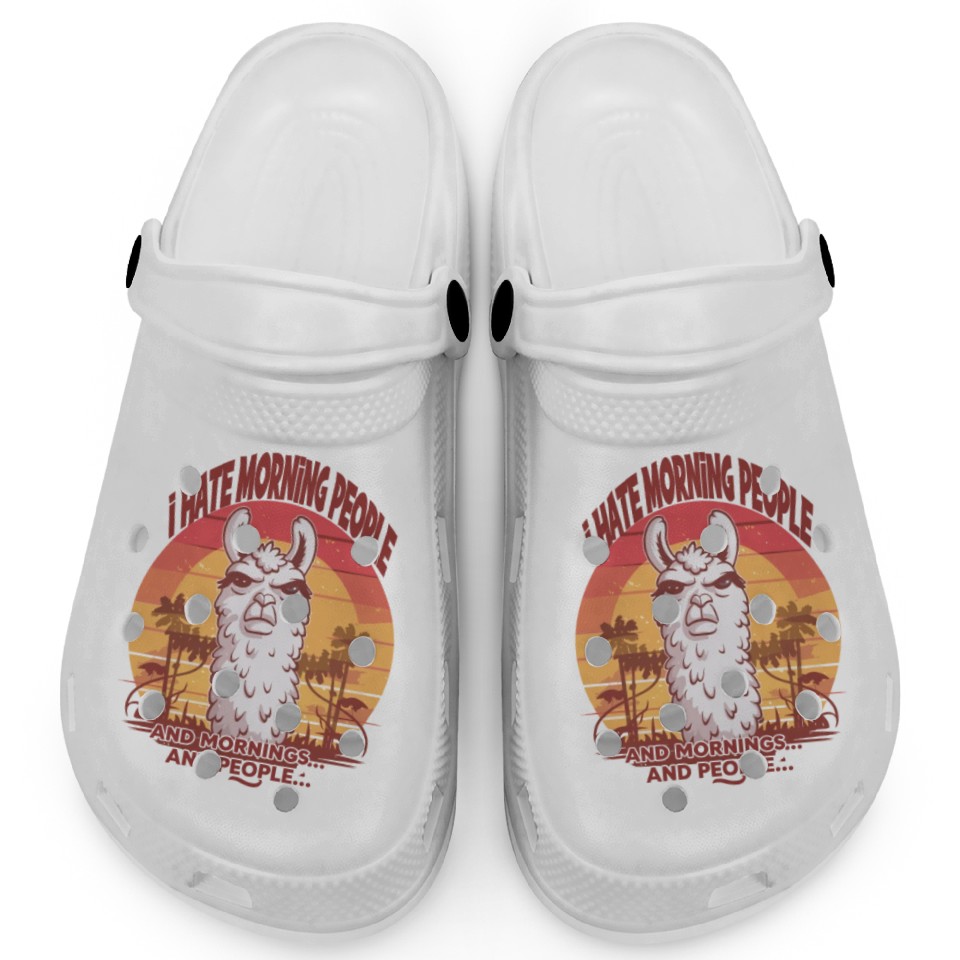 You're looking at the eye-catching product I Hate Morning People for a Morning grumpy Llama Clogs For Kids WHITE belong theme Clogs at Printblur