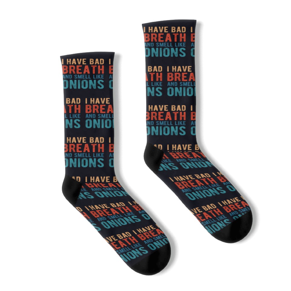Buy stunning I HAVE BAD BREATH AND SMELL LIKE ONIONS Socks or see more Socks products at Printblur right now to receive many amazing discounts!