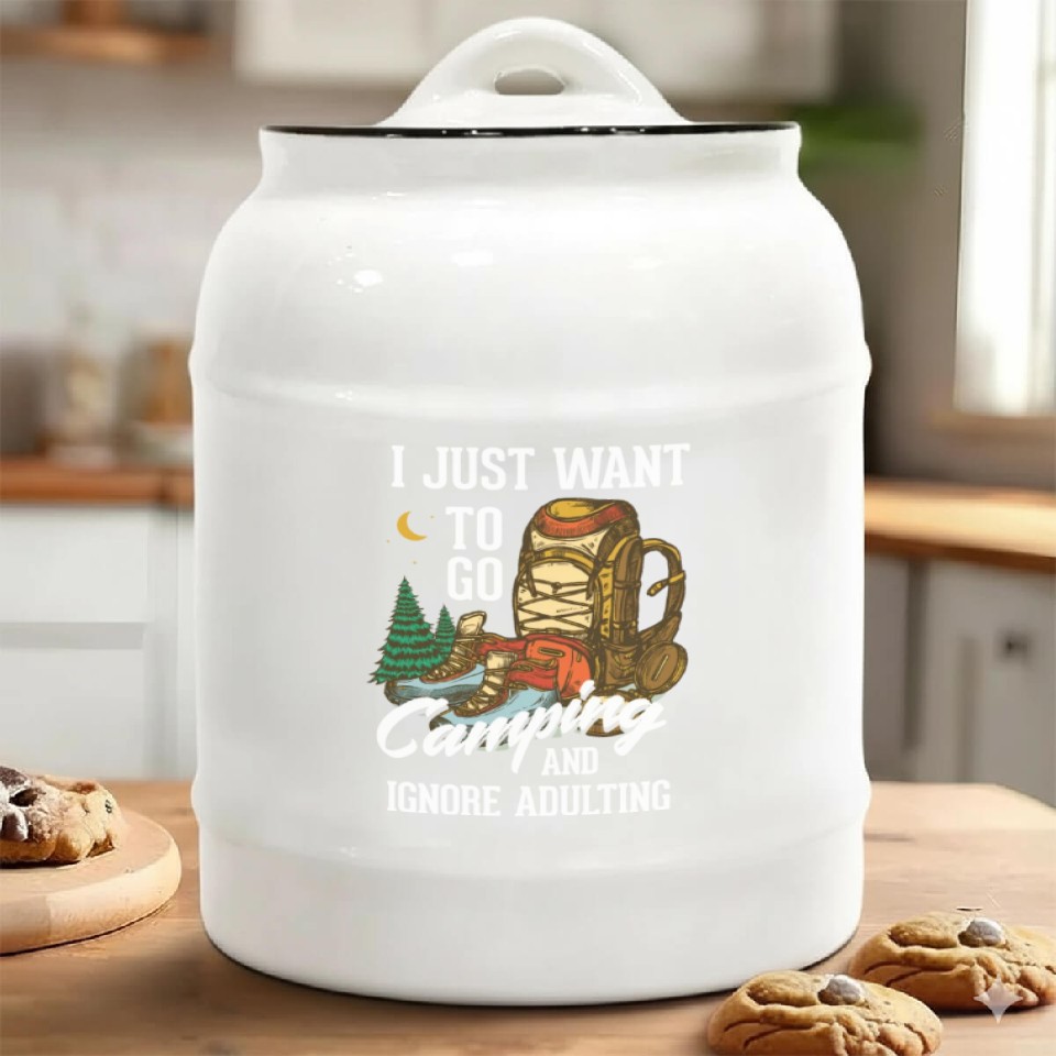 Shop for impressive I just want to go camping and ignore adulting Ceramic Cookie Jars or see more Ceramic Cookie Jars products right now on Printblur to enjoy your happiness!