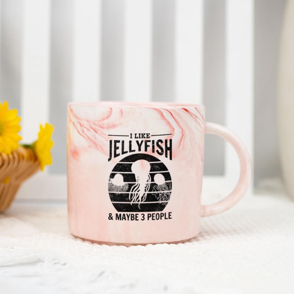 You are shopping for a stunning and trendy product I Like Jellyfish & Maybe 3 People Jellyfish Lover Marble Mugs For Pink belong theme Marble Mugs at Printblur