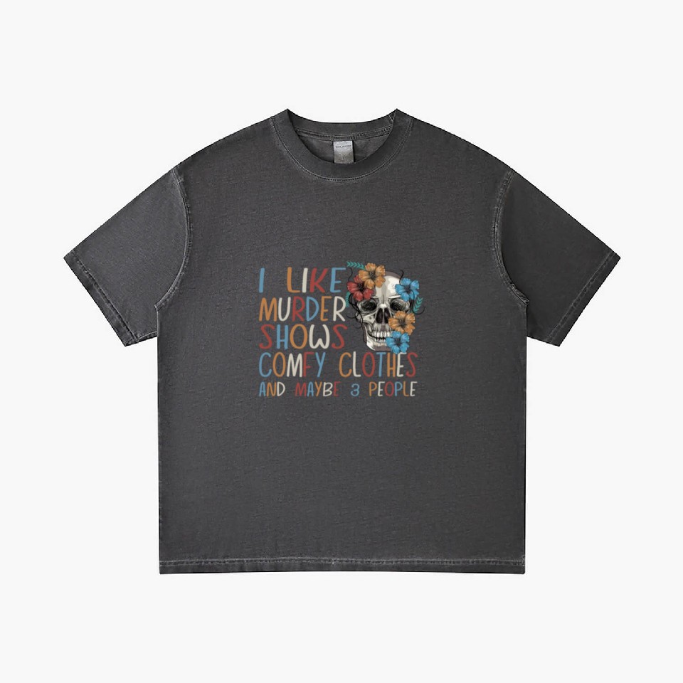 The product unique design you searched for is I Like Murder Shows Comfy Clothes And 3 People Gradient T Shirts For Men Washed Black belong theme Gradient T-Shirts at Printblur
