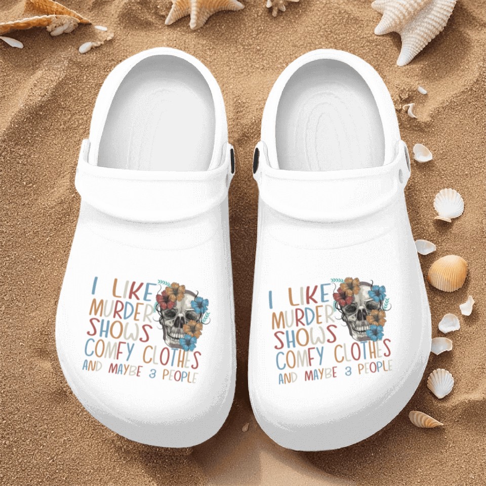 The item hot trend you're looking at is I Like Murder Shows Comfy Clothes And 3 People Nurse Clogs For Men WHITE belong theme Nurse Clogs at Printblur