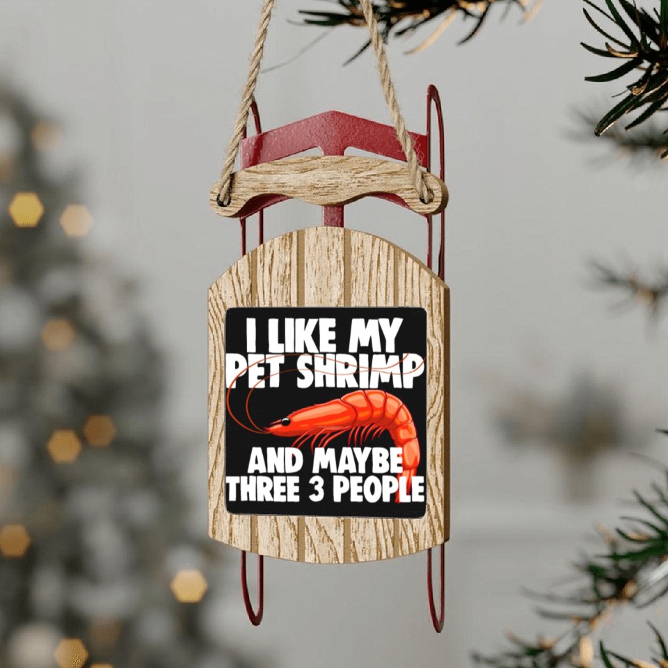 I Like My Pet Shrimp And Maybe Three 3 People Sled Ornaments
