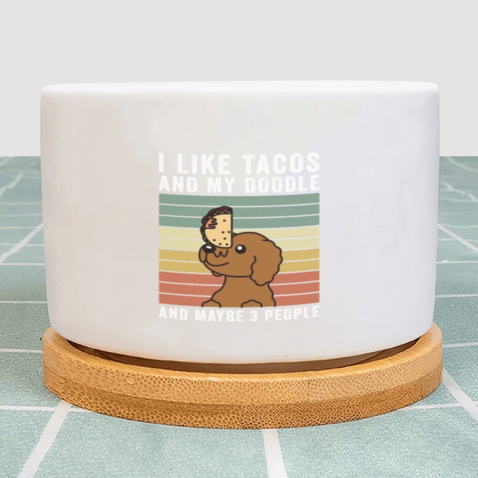 You are viewing an exclusive and elegant product I Like Tacos And My Goldendoodle Plant Pots For WHITE belong theme Plant Pots at Printblur