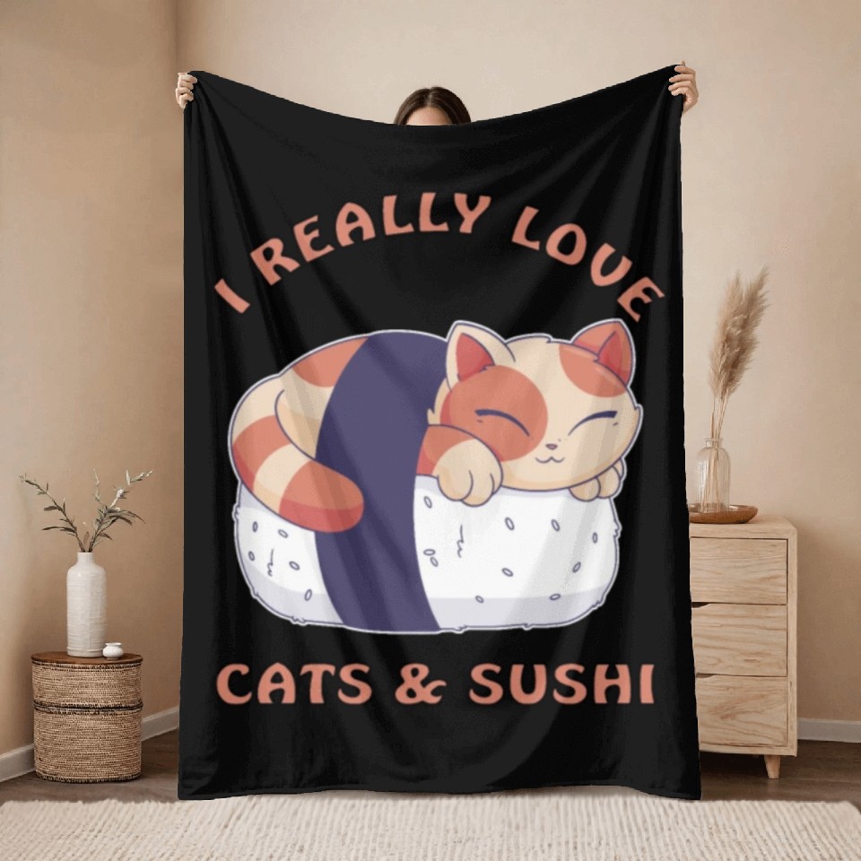 Buy eye-catching I love cats and sushi Throw Blankets or see more Throw Blankets products at Printblur shop now to explore many surprises from our shop!