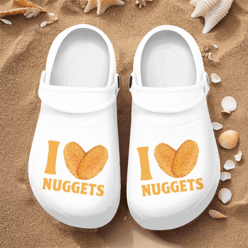 You're searching for a one-of-a-kind product I Love Chicken Nuggets Nurse Clogs For Men WHITE belong theme Nurse Clogs at Printblur