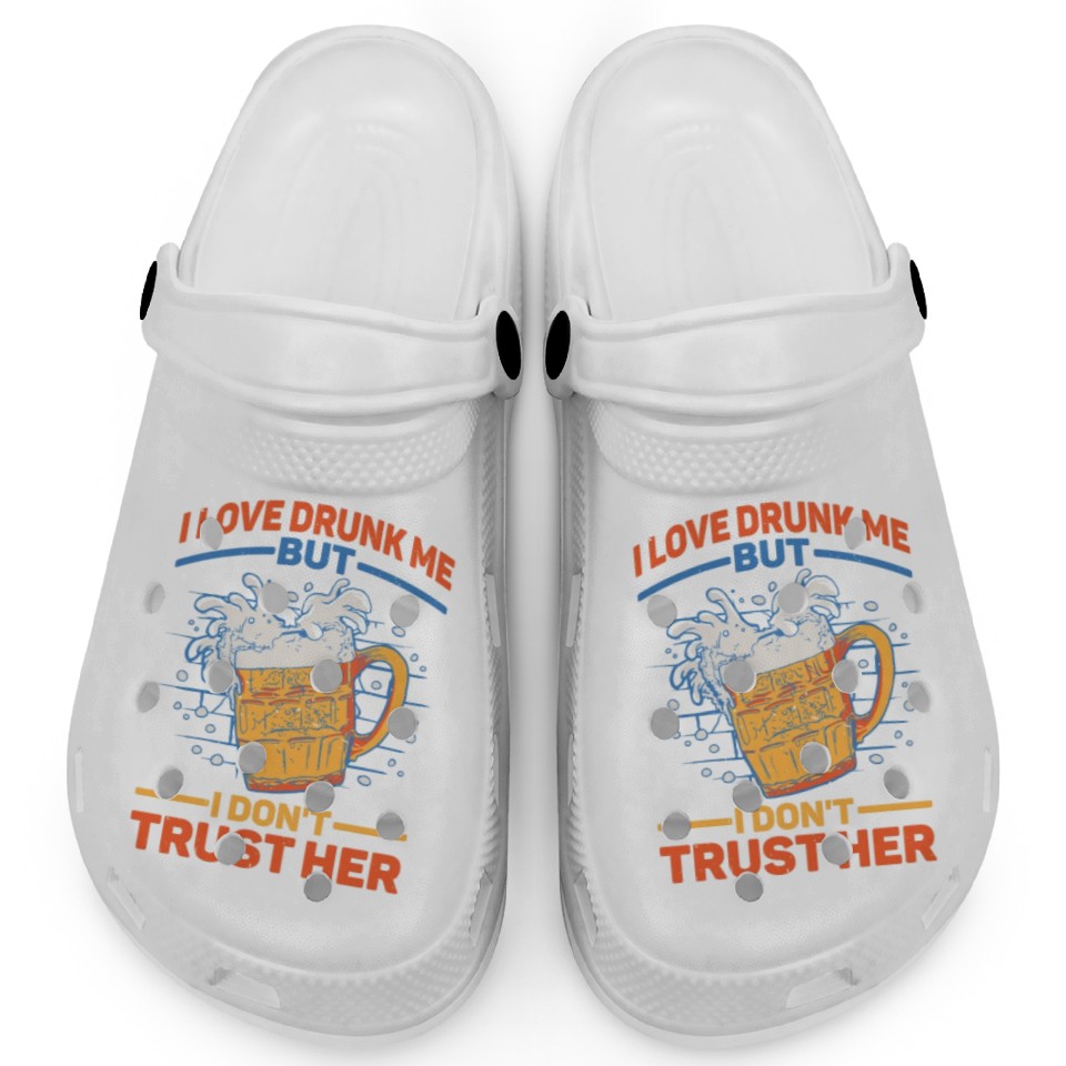 Shop for attractive I Love Drunk Me But I Don't Trust Her 2 Clogs or see more Clogs products on https://printblur.com right now!
