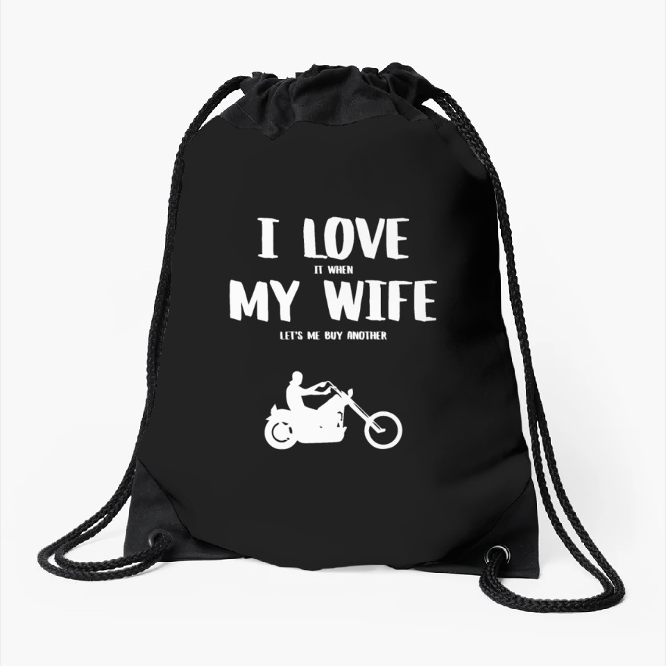 Buy eye-catching I love it when my wife - funny chopper Drawstring Bags or see more Drawstring Bags products at Printblur shop now to explore many surprises from our shop!