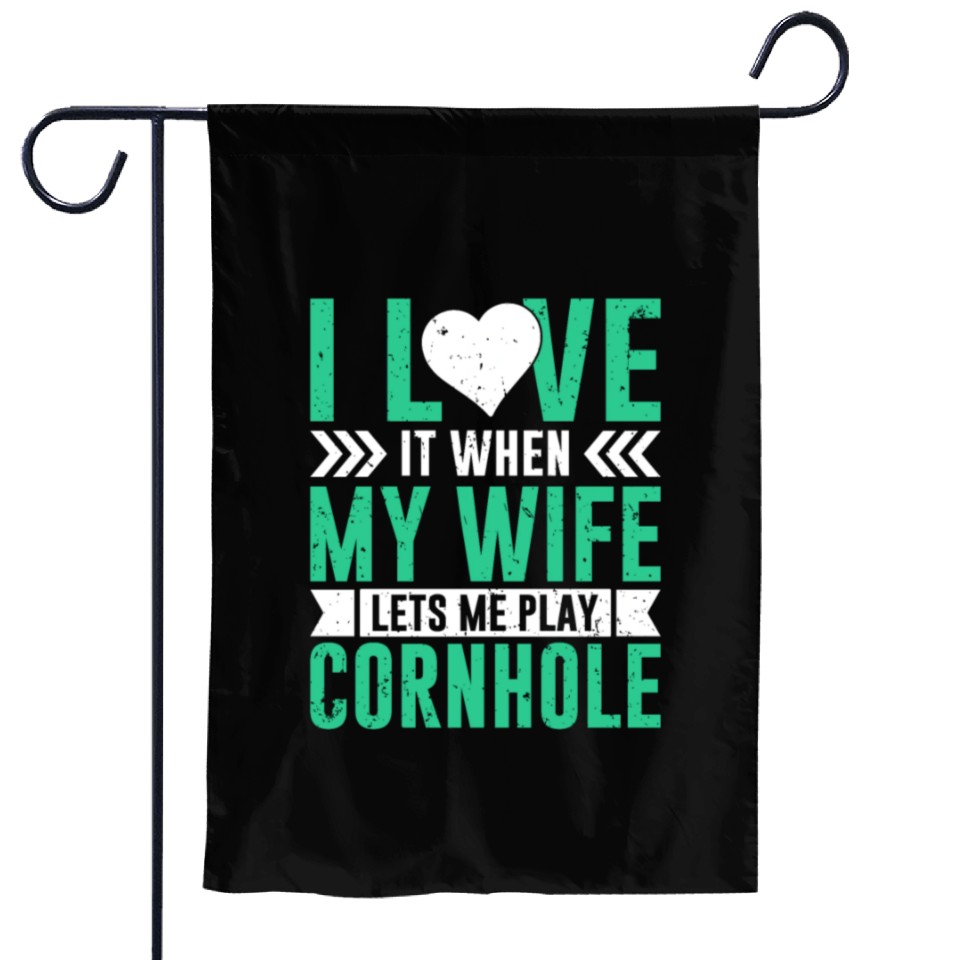 Shop for impressive I love it when my wife lets me play cornhole Garden Flags or see more Garden Flags products right now on Printblur to enjoy your happiness!