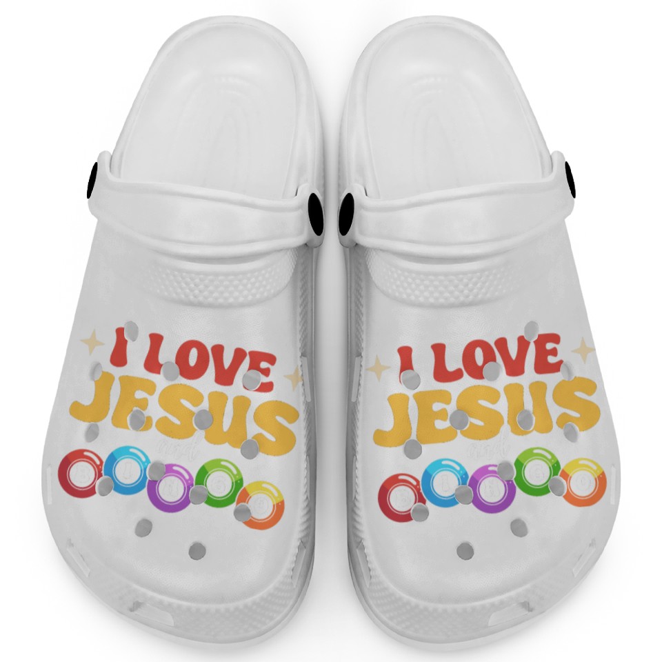 You are seeing a unique and impressive product I Love Jesus and Bingo Clogs For Kids WHITE belong theme Clogs at Printblur